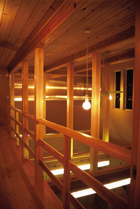 上記のように家を触るということは、生活や生き方の一部または全てが表出する行為です。「のびのび空までの家」は、子供たちの成長に合わせ、独立した部屋が要るようになったパターンです。元は古い納屋の2階で若夫婦と3人の元気な子供たちが生活していました。計画は単純に子供部屋を確保するという最低限度に留めることも出来ましたが、打ち合わせを重ねる度に、親が子を思い成長を願う気持ちが伝わってきて、「成長を願う」をコンセプトとして定め、形にすることにしました。開放的で素直な子供たちが、このまま伸び伸びと成長するようにと、子供部屋は南面させ南北にデッキを設けて外部とのつながりを持たせました。子供部屋同士も可動する壁で区切られていて、それぞれ行き来できるようになっていて、全ての方向に閉じることなく自然や人の気配を感じながら、暮らせるようになっています。また永遠の成長を願って、それぞれのロフトには空につながる大きな眼(まなこ)をつけました。「思い」を形作ると、家族の「らしさ」が表情となってお目見えすることになります。